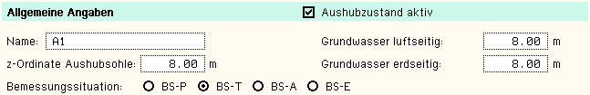Parameter für Aushubzustand |