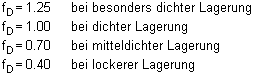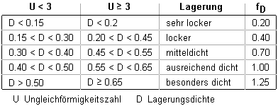 | Für nicht bindige Böden gelten die Werte der nachfolgenden Tabelle. |