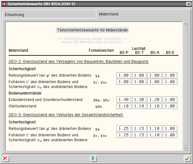 | Diese Sicherheitsbeiwerte können bei Bedarf verändert