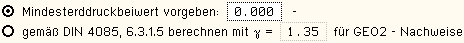 Das Programm kann den Mindesterddruck entspr. DIN