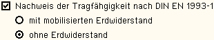 | Durch Setzen des Vorgabewerts γ = 1.35 wird der Mindesterddruck bei Nachweisen im GEO2 (GZ1) auf den Bemessungserddruck