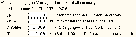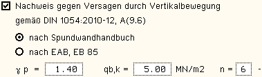 | Der Teilsicherheitsbeiwert γp für den Widerstand kann vom Anwender vorgegeben werden. |