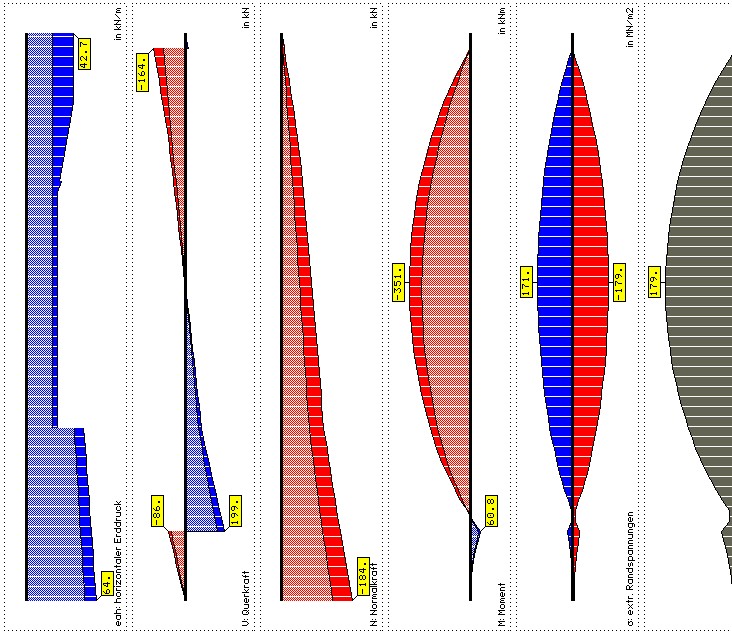 -GRUBE, Spund-/Trägerbohlwand, Eingabeoberfläche - Ergebnisfenster