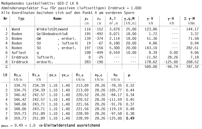 | die Berechnung des Erddrucks erfolgt nach der Theorie von Coulomb und