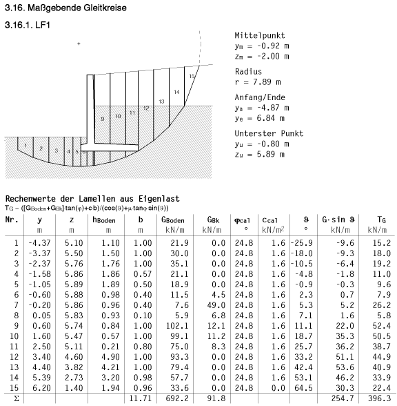 Die Berechnung umfasst sowohl die grundbautechnischen