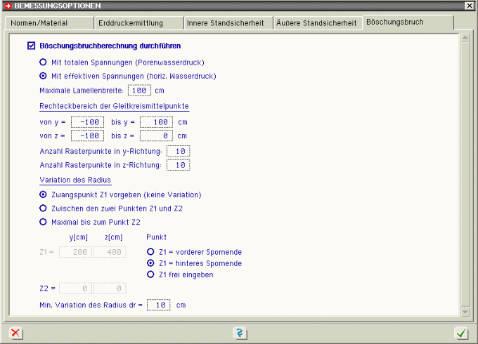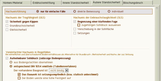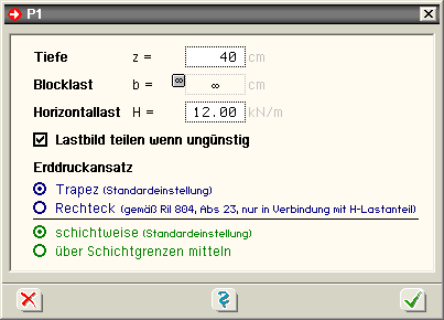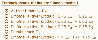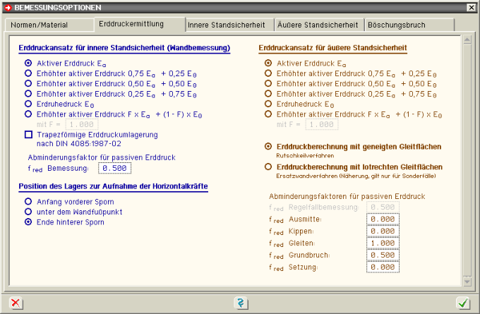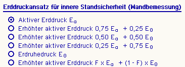 die Parameter zur Erddruckermittlung eingestellt werden |