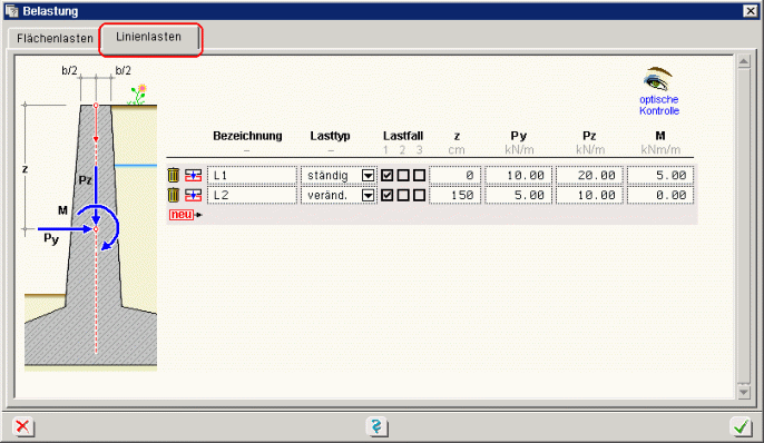 oder Linienlasten, die direkt an der aufgehenden Wand