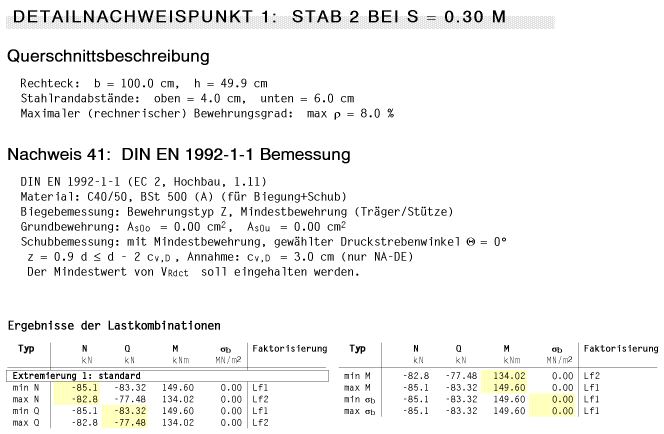 für die Längsbewehrung geführt, ein Nachweis der Querkraftbewehrung
