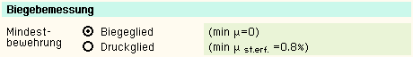 | Eine Mindestbewehrung ist nur für Druckglieder zu berücksichtigen. |