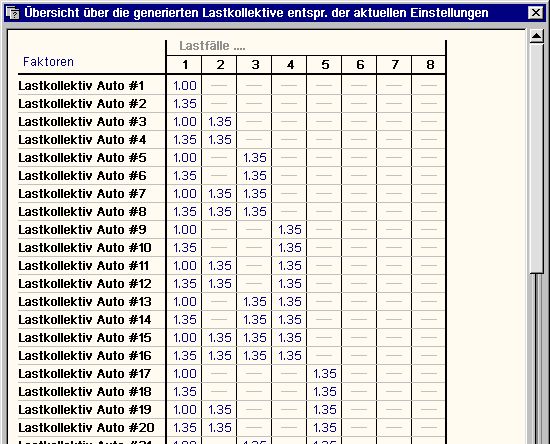 Lastfallkollektive gebildet. Eine Tabelle zeigt das Generierungsergebnis. |