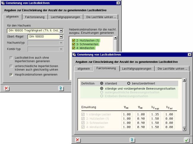 | Für nichtlineare Nachweise sind Lastfallkollektive