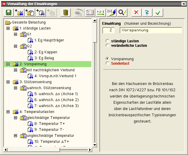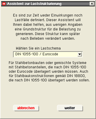 | Vor Beginn der Lasteingabe sind Einwirkungen und