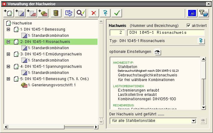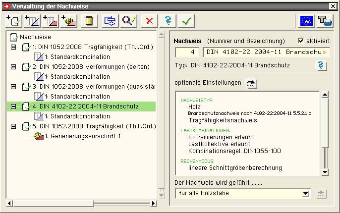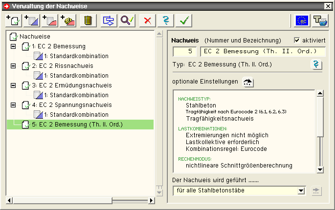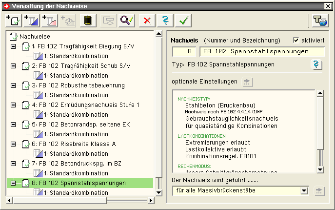 der Nachweise zeigt die automatisch erstellte Standardkombination