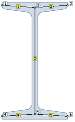Es besteht aus 6 Knotenpunkten und 5 Linien, die gemeinsam ein Doppel-T-Profil der