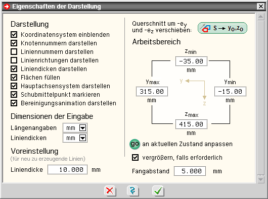 Das Eigenschaftsblatt zur Verwaltung gespeicherter Querschnitte wird auf der Seite Verwaltung erläutert.