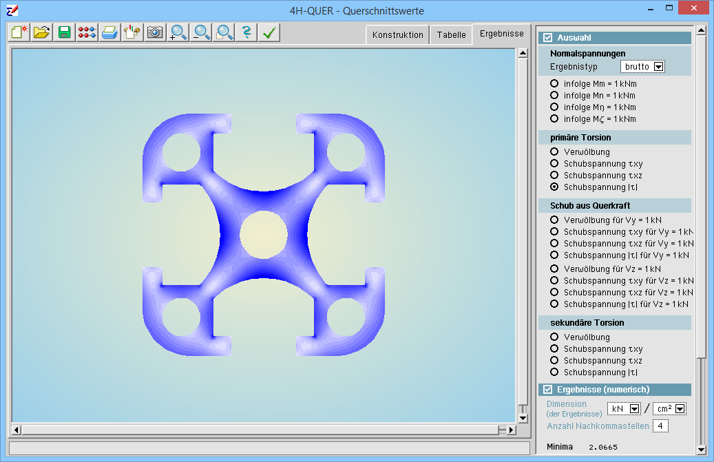 | 4H-QUER, Aluminiumquerschnitt - Darstellung Schubspannungsverlauf |