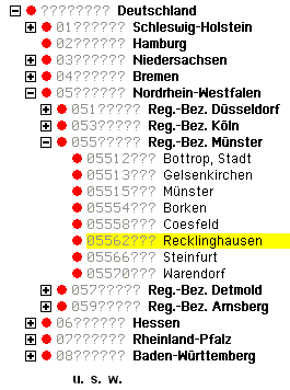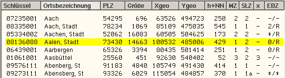 Orte bzw. Gemeinden im Ortsverzeichnisfenster