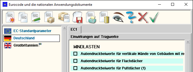 in der 4H-WUSL-Benutzeroberfläche Eurocode mit Bezug auf das deutsche nationale Anwendungsdokument