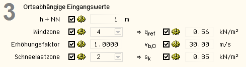 die ortsabhängigen Eingangswerte zusammengestellt. |