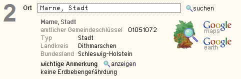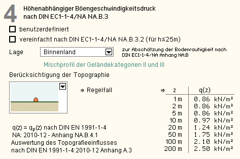 | Weitere Möglichkeiten sind Höhe über NN, Windzonen, Schneelastzonen und Erdbebenzonen. |