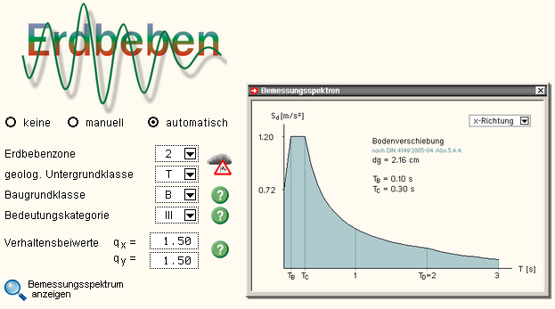 Antwortspektrum gemäß DIN 4149:2005 ermittelt