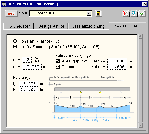 | Im Brückenbaumodul werden die Lastfaktoren für