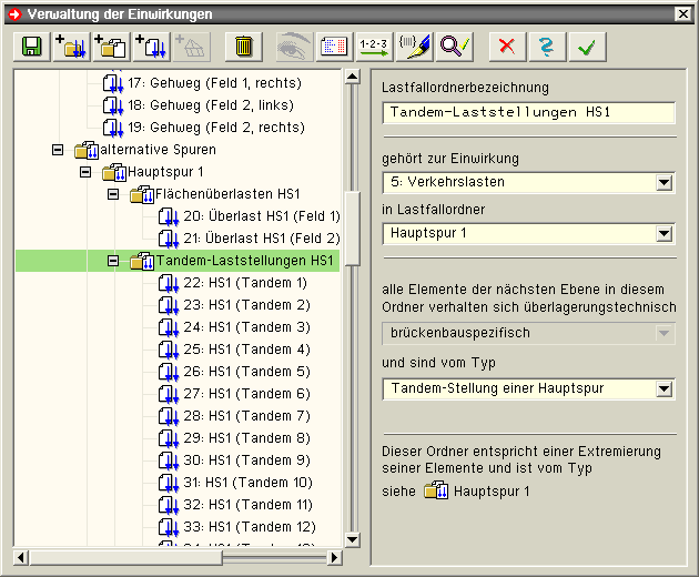 | Im Brückenbaumodul erklären alle Lastfallordner
