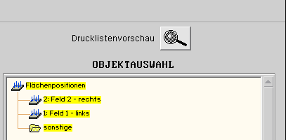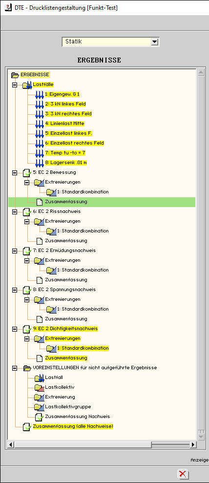 | Nur die in diesem Baum gelb markierten Einträge werden in die Ergebnisdruckliste übernommen. |