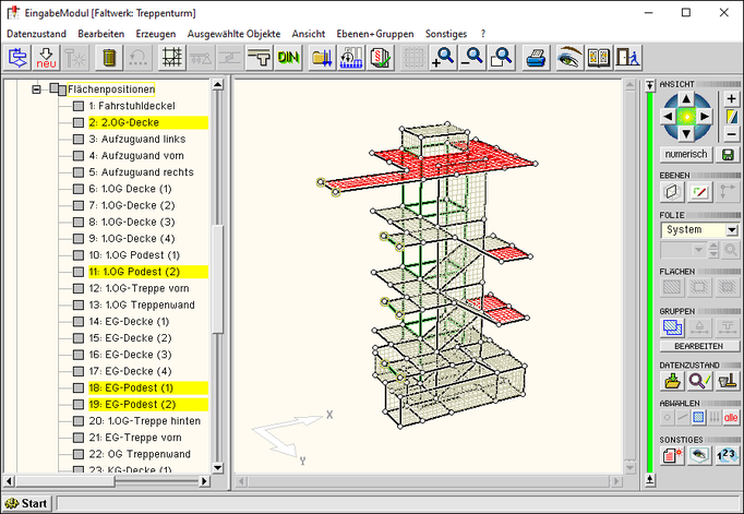 wie Flächen/Stabeigenschaften, Gelenkbedingungen, Lagerfesthaltungen