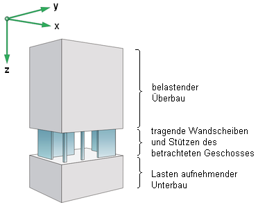 belastenden Überbau, die tragenden Wandscheiben und