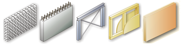 Als Material können die Wandtypen Mauerwerk (EC 6/DIN 1053-100), Stahlbeton (EC 2/DIN 1045-1),
