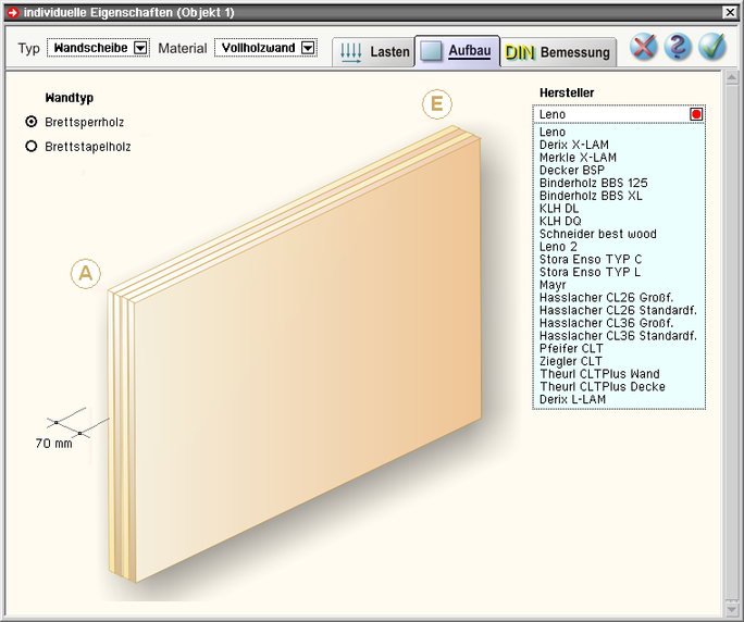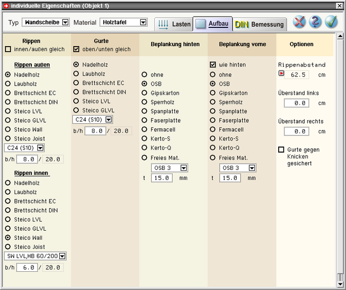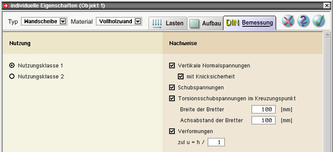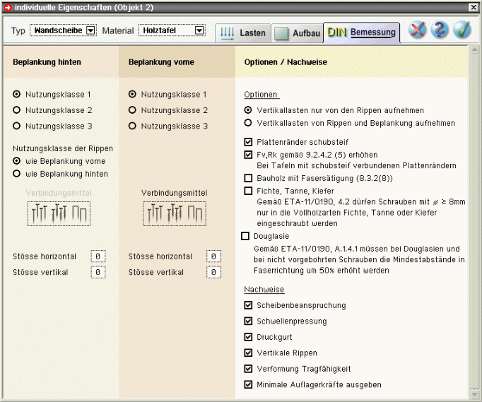 | Ein automatisch initiierter Sprung ins 2. Register zeigt das Ergebnis auf den Seiten Wandscheiben und Deckenplatte an. |