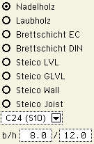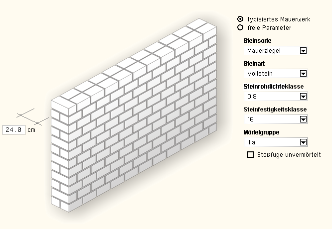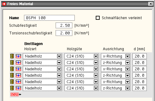 Um bei dem Beispiel aus Projekt 2 (Tutorium) zu bleiben, wählen Sie Stahlbeton mit einer Dicke