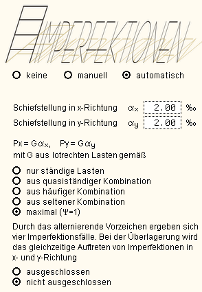 Seite Lasten bei Auswahl der automatischen Lasterzeugung in den Eigenschaftsblättern für die Zusammenstellung der lotrechten