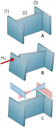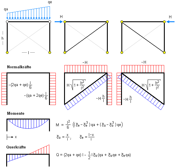 | Man beachte, dass die Horizontalkraft H nur an das Faltwerk, nicht aber an die Platte übergeben werden kann, da die