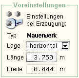 | Klicken Sie die nebenstehend dargestellte Schaltfläche an, um den zu importierenden Wänden voreingestellte Materialeigenschaften