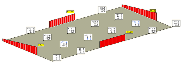 | In den Lastfallfolien werden Lastbilder erzeugt, die den Auflagerreaktionen an den Unterkanten der