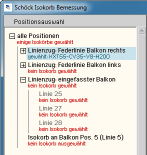 Ist eine Position ausgewählt, der ein -Symbol vorangestellt ist, und wird dieser Position ein Isokorb zugeordnet, gilt diese Zuordnung für alle Elemente (Linien) der Position. |