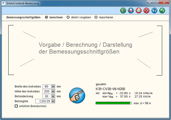 | Mit dem Programm 4H-ISOKO können Schöck-Isokörbe ausgewählt werden, die den gegebenen Bemessungsschnittgrößen sowie
