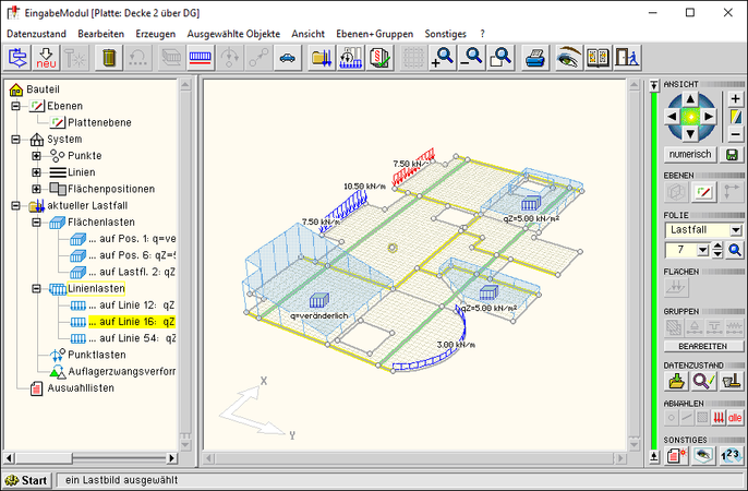 | Neben den variablen Flächenlasten stehen veränderliche Linienlasten und veränderliche