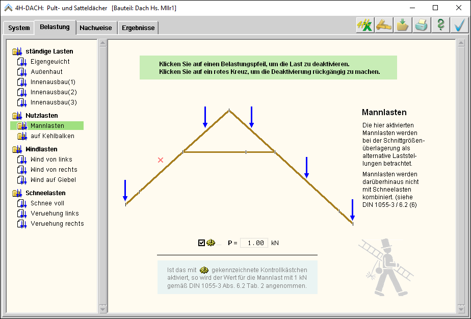 -DACH, Pult- / Satteldach, Belastung - Nutzlasten