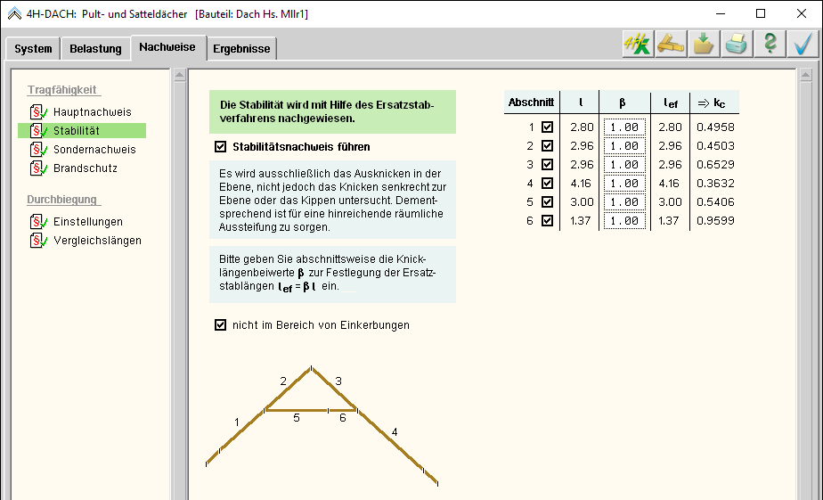 -DACH, Pult- / Satteldach, Tragfähigkeitsnachweise - Stabilität