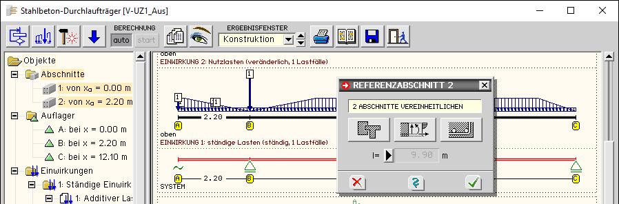 -DULAB, Stahlbetondurchlaufträger, Eingabeoberfläche - Stäbe vereinheitlichen