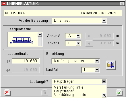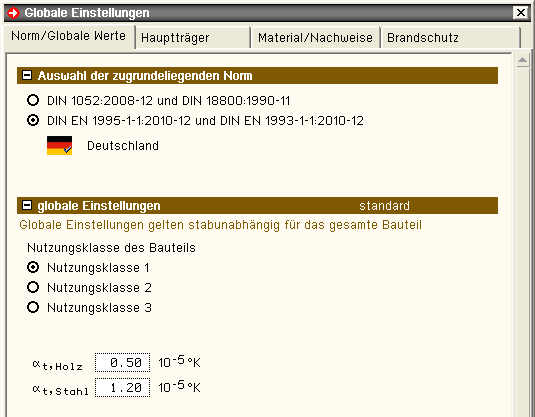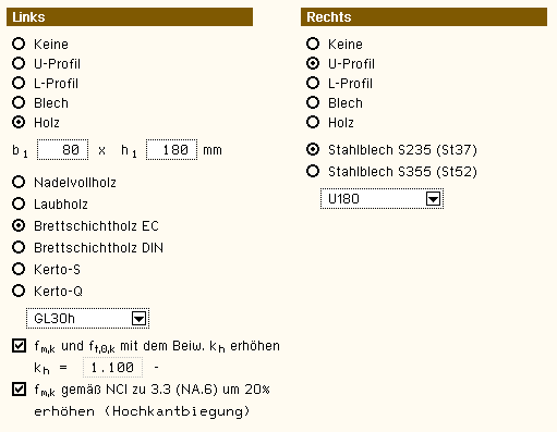 Geometrie- und Materialdaten eingegeben werden. |