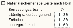 Werte für die Materialsicherheitsbeiwerte verändert