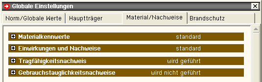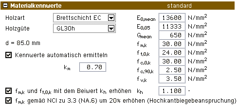 | Die Materialkennwerte werden daraufhin