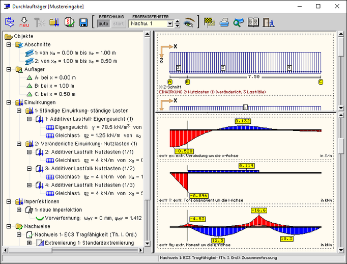und Mehrfeldträger nach Theorie I. und/oder II. Ordnung |