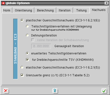 | Je nach Norm werden dann die entsprechenden Nachweisoptionen