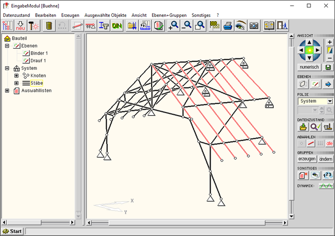 löschen, erzeugen weiterer Stäbe usw. wird das Drahtmodell