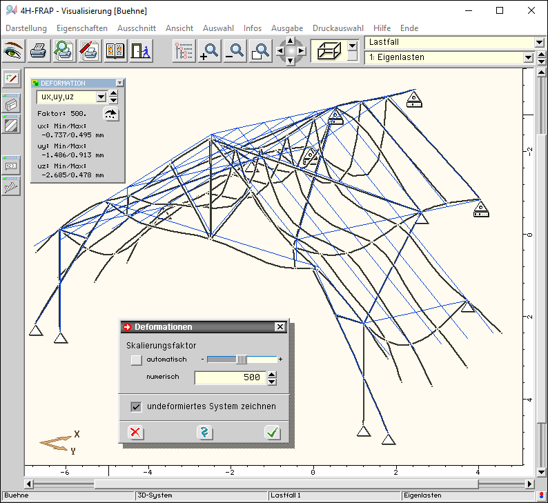 -FRAP, Räumliche Stabtragwerke, Visualisierung - Deformationsfiguren